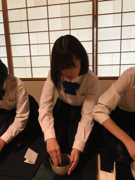まずお辞儀の仕方や作法を学び、お点前を披露していただいた後、一人ひとりが
