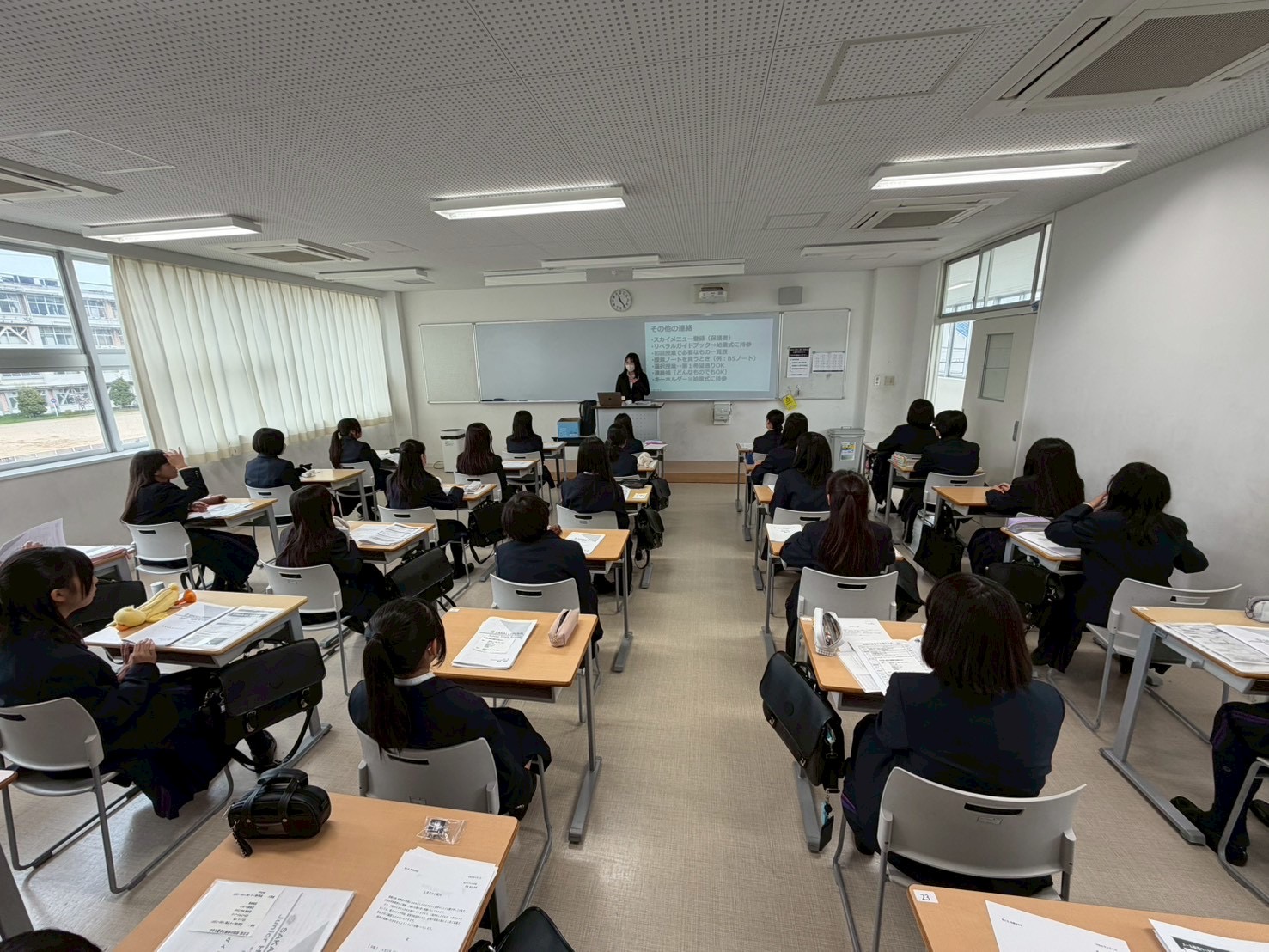 新入生オリエンテーションが行われました。校長先生の話を、期待と不安の入りまじったキラキラした目で聞いていました。